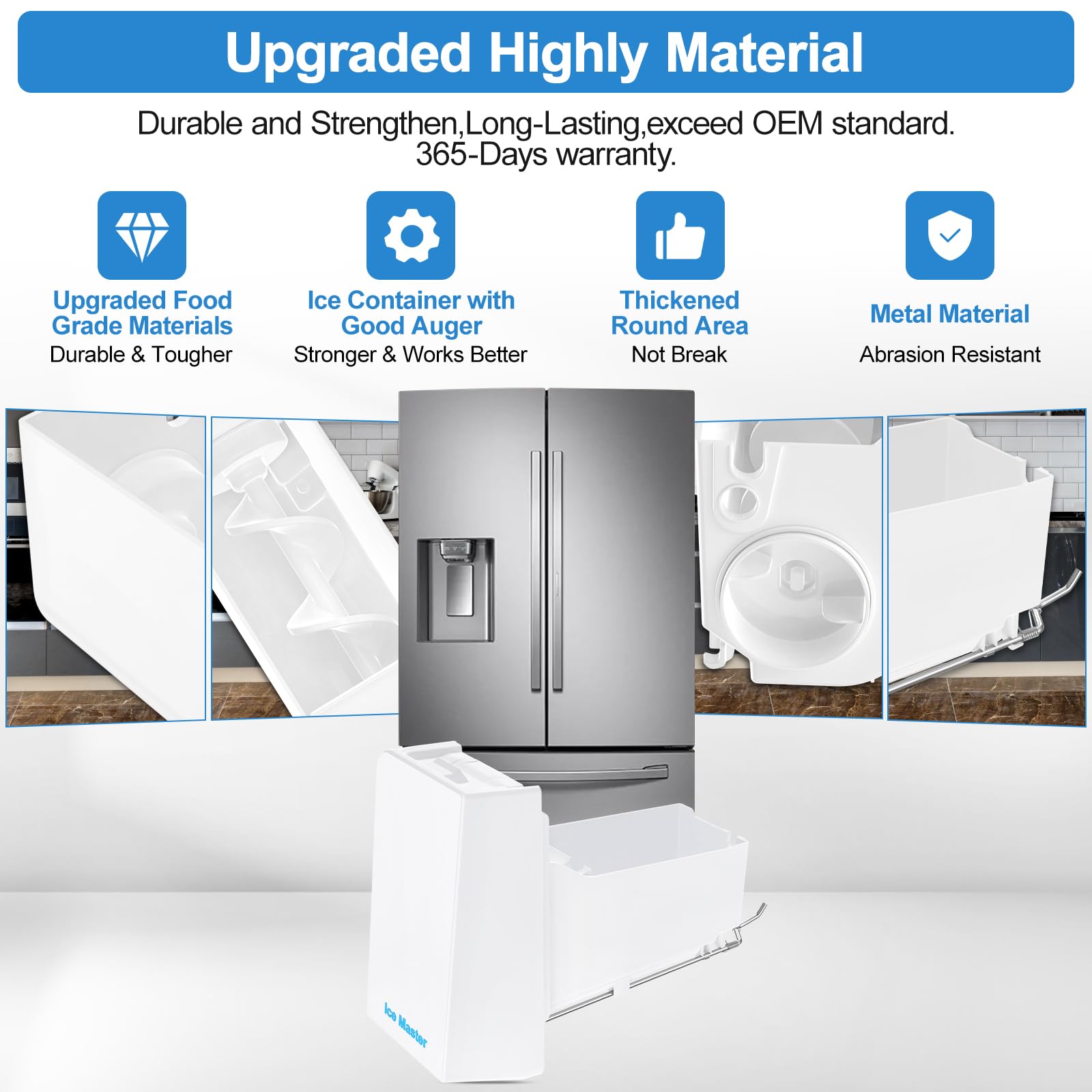 - ăHigh Quality and Durable Material-Samsung Replacement Ice MakerăDA97-14504C samsung replacement ice bucket samsung da97-14504a ice bucket for samsung ice tray replacement made of environmentally friendly premium thickened food grade materials,durable and strengthen. Our Samsung ice maker parts meet OEM standard,it have good Auger,better constructed let your samsung ice maker tray works better.Upgraded Thickened Heavy Duty Blades,Corrosion Resistant Long-lasting, Dispense Cubed and Crush Ice Is Well. DA97-14504C ice maker fixes symptoms:A: No Crushed ice; B: No ice at all; C: ice buckets are cracks; D: Auger break; E: Ice Makers Freezing up.