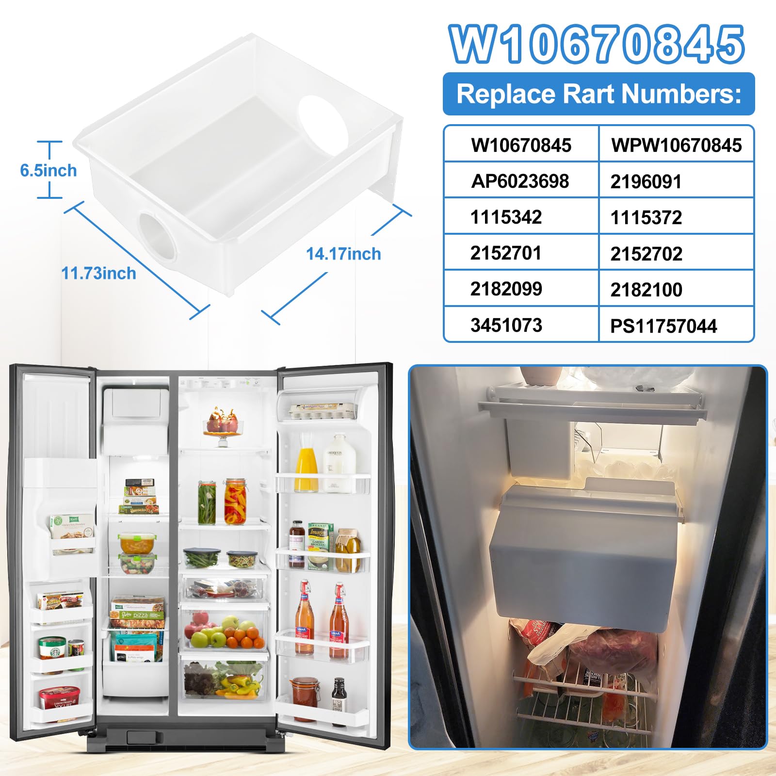 Upgraded W10670845 Refrigerator Ice Bucket Compatible with Whirlpool Ice Maker Replacement Parts WPW10670845 Removable Ice Bin for Kenmore Ice Maker Replacement WRS325FDAM04, WRS315SDHM08 Ice Bin