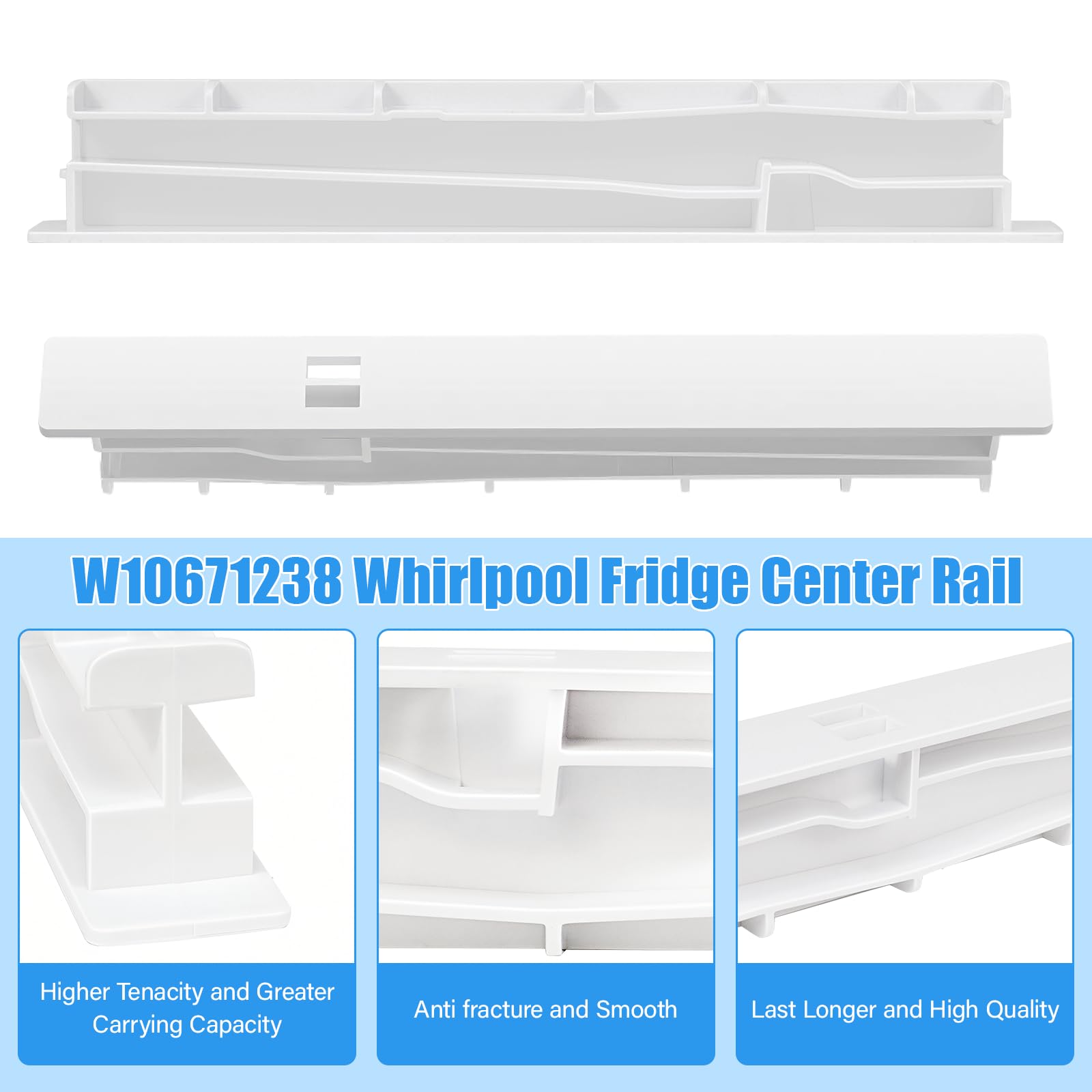 Upgraded WPW10671238 W10671238 Refrigerator Drawer Slide Rail Compatible with Whirlpool Kenmore Maytag Amana kitchenaid Refrigerator Drawer Slide Parts PS11757048 AP6023702 67001057 Fridge Center Rail